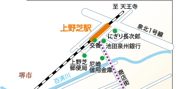 ●「上野芝」駅下車 南へ約1km(徒歩約15分)